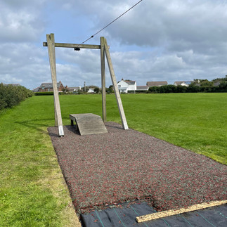 We were contacted by St Martin Parish Council who wished to have the rubber mulch extended to include underneath the Zip Wire. This entailed removing the existing rubber matts, which were to be sold, and replacing them with Ecobond rubber mulch.