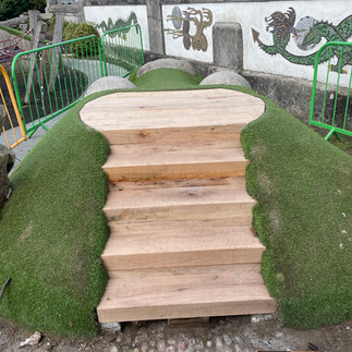 Again, we used oak sleepers purchased from Truro Sawmills for the installation of the stairs. Our playground maintainer, Benjamin Phillips, assisted Geoffrey with the installation.