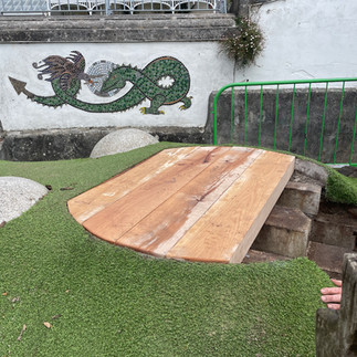 Oak sleepers purchased from Truro Sawmills were used as the platform for the crocodile. We chose Oak as it is a hardwood and has a longer lifespan.