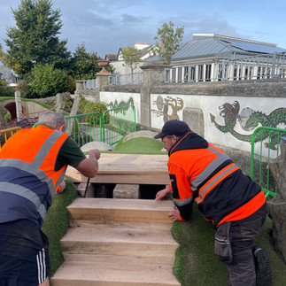 We were contacted by Falmouth Town Council regarding the replacement of the rotting steps and platform on the Crocodile at Gyllyngdune Gardens in Princess Pavilions, Falmouth.